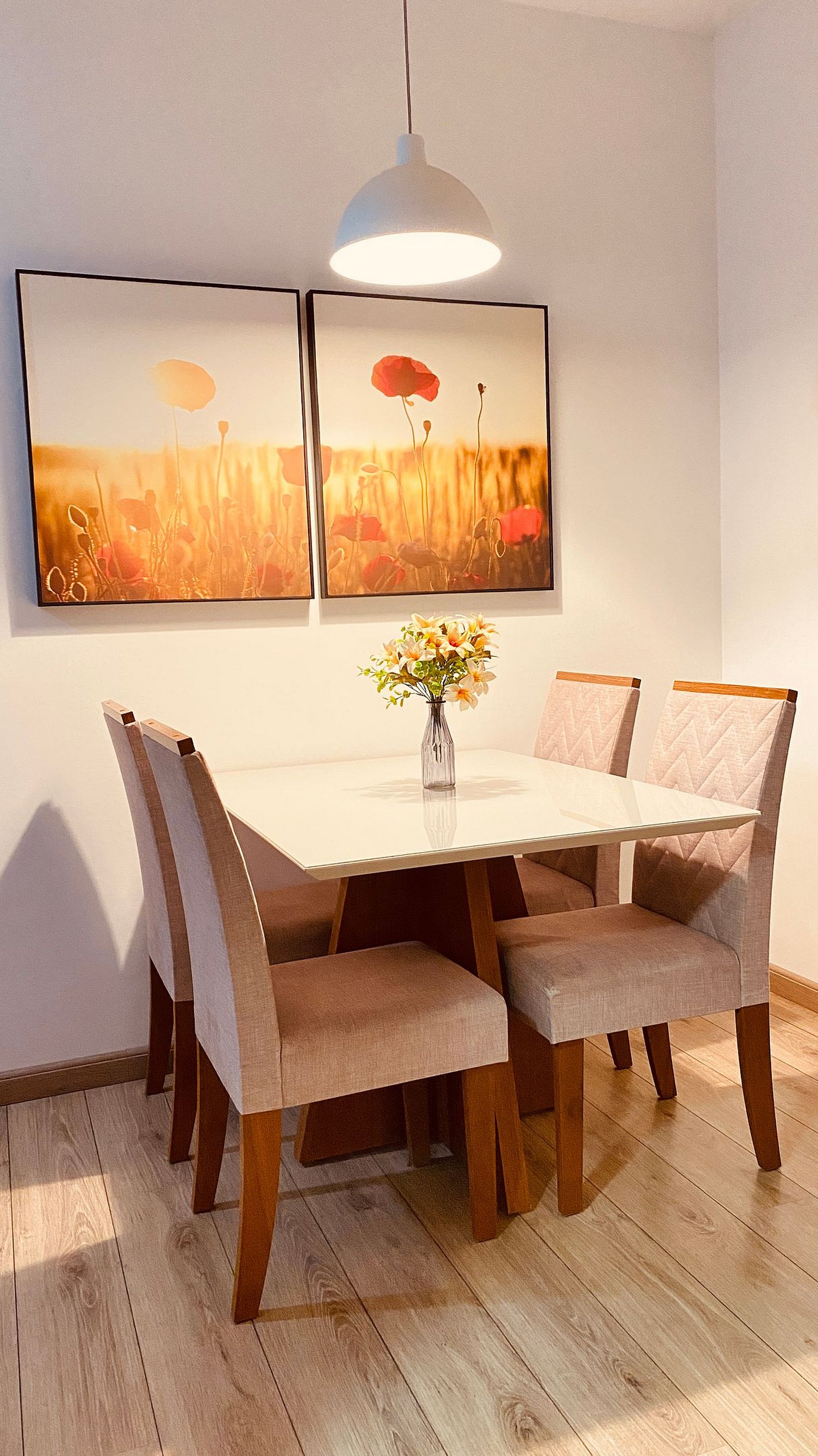 O espaço conta com sala de jantar integrada, ar-condicionado e acabamento de alto padrão.