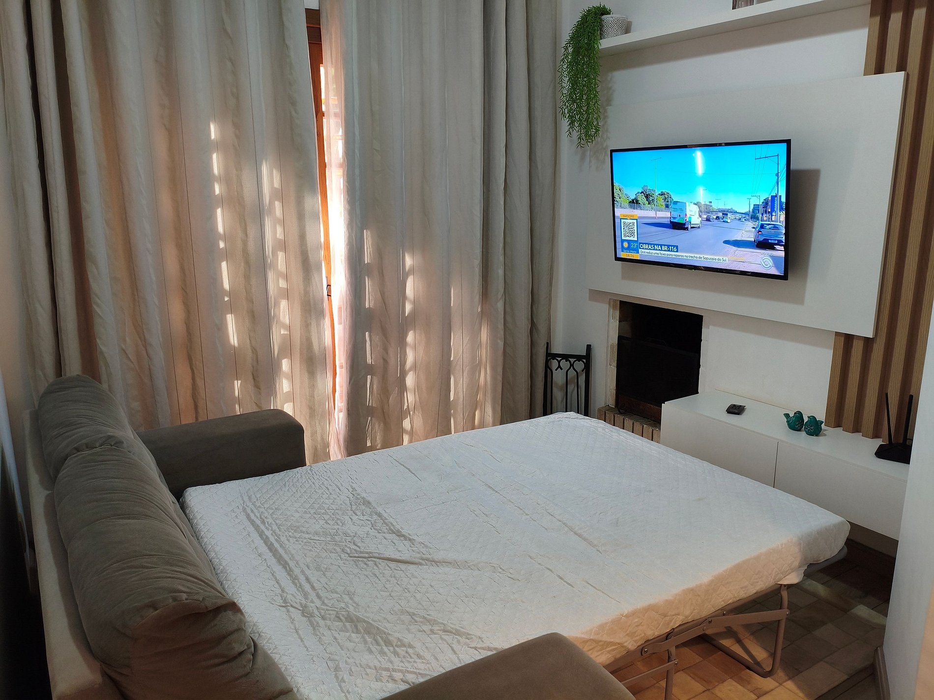Apto Premium no Centro/Planalto: Varanda Gourmet e Conforto Total. Para até 4 pessoas.Hospede-se no melhor bairro de Gramado! Apto moderno com 1 quarto climatizado, sala de TV aconchegante com sofá cama e jantar integrada. Destaque para a varanda gourmet com churrasqueira, perfeita para relaxar após passear. A passos das principais atrações.Nossos destaques:- Ar-condicionado (Quente/Frio) - Varanda Gourmet com Churrasqueira - Smart TV e Wi-Fi - Localização Nobre (Centro/Planalto)