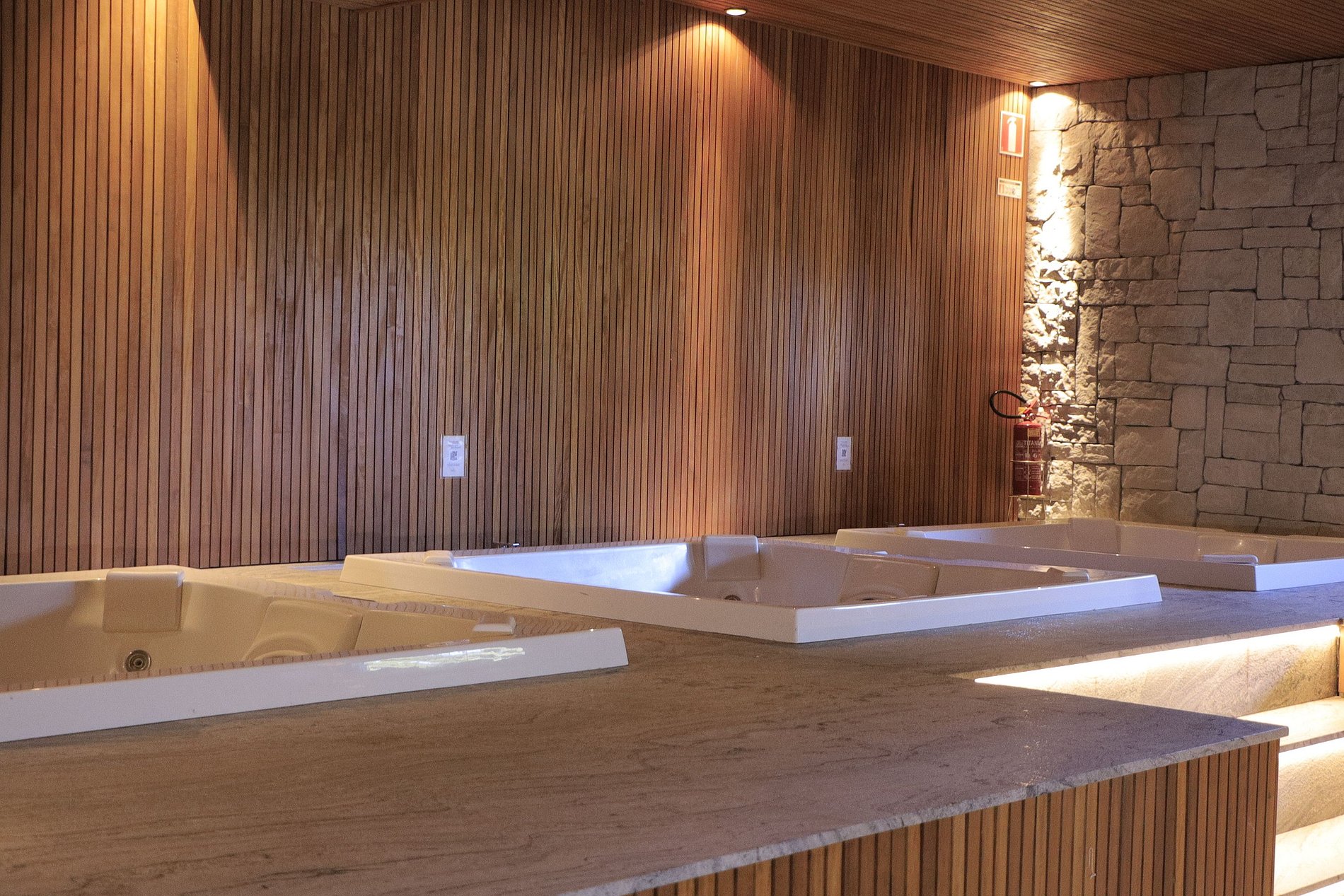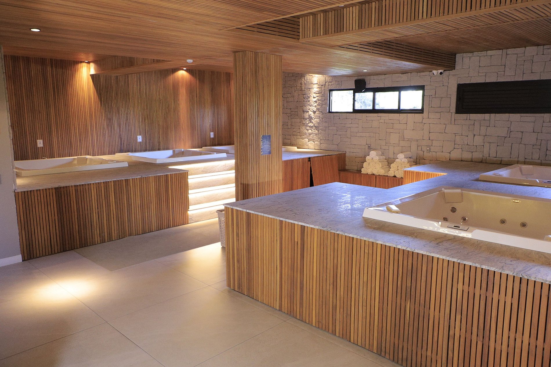 Complexo de Águas: Relaxe na nossa ampla piscina coberta e climatizada, perfeita para qualquer clima da Serra. Para um relaxamento profundo, aproveite nossas jacuzzis e as saunas seca e a vapor.