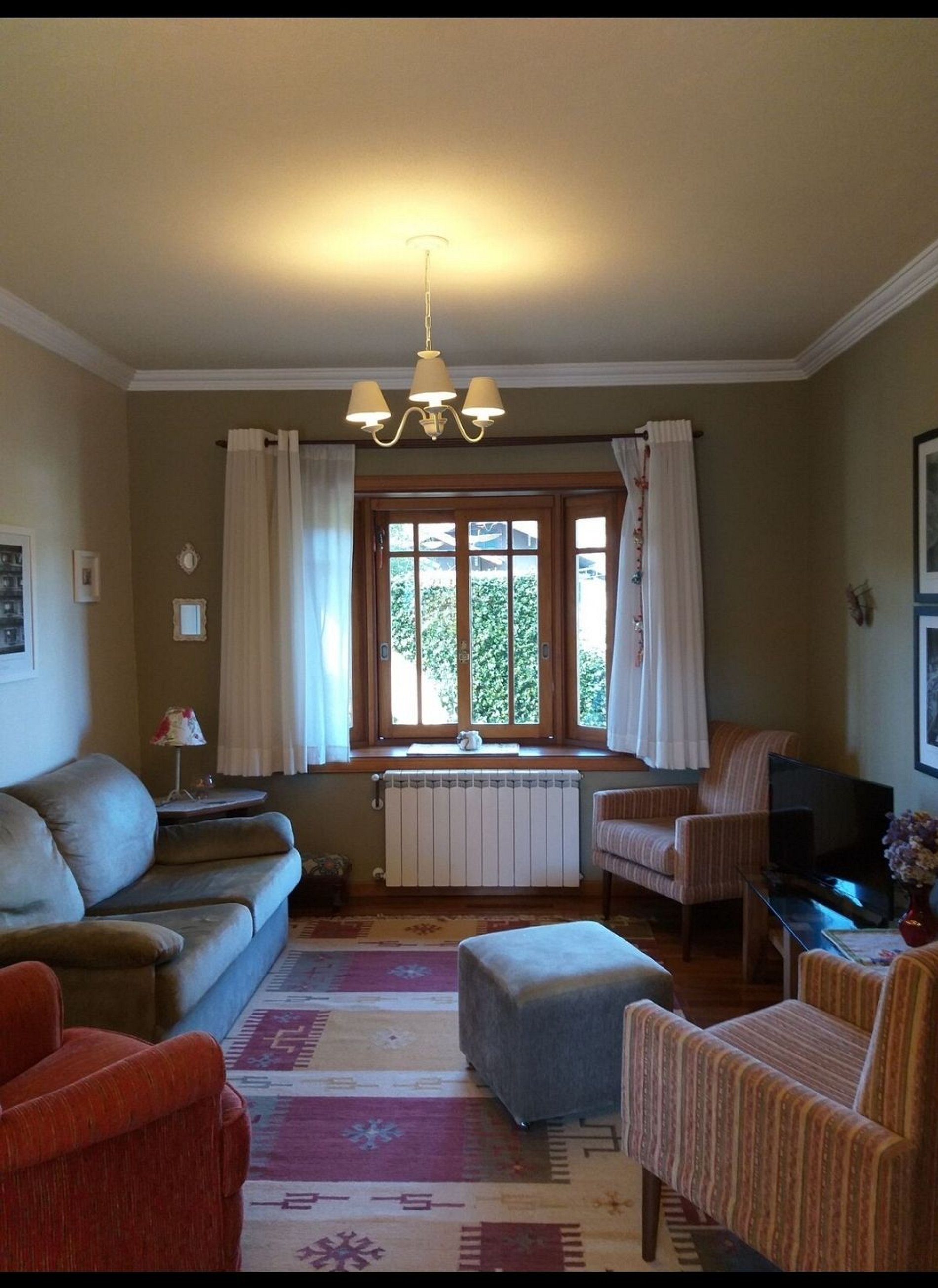 Apartamento térreo com pátio, jardim e frutíferas na região central de Gramado a poucos minutos do centro com a comodidade de deixar seu veículo na garagem e ir andando para a rua Coberta de Gramado. As acomodações são bem aconchegantes, com uma suíte e um quarto de solteiro com duas camas, se a família for um pouco maior, pode contar com o sofá cama de casal na sala. A lareira a lenha torna o ambiente ainda mais agradável, podendo ser usada de acordo as normas de segurança.