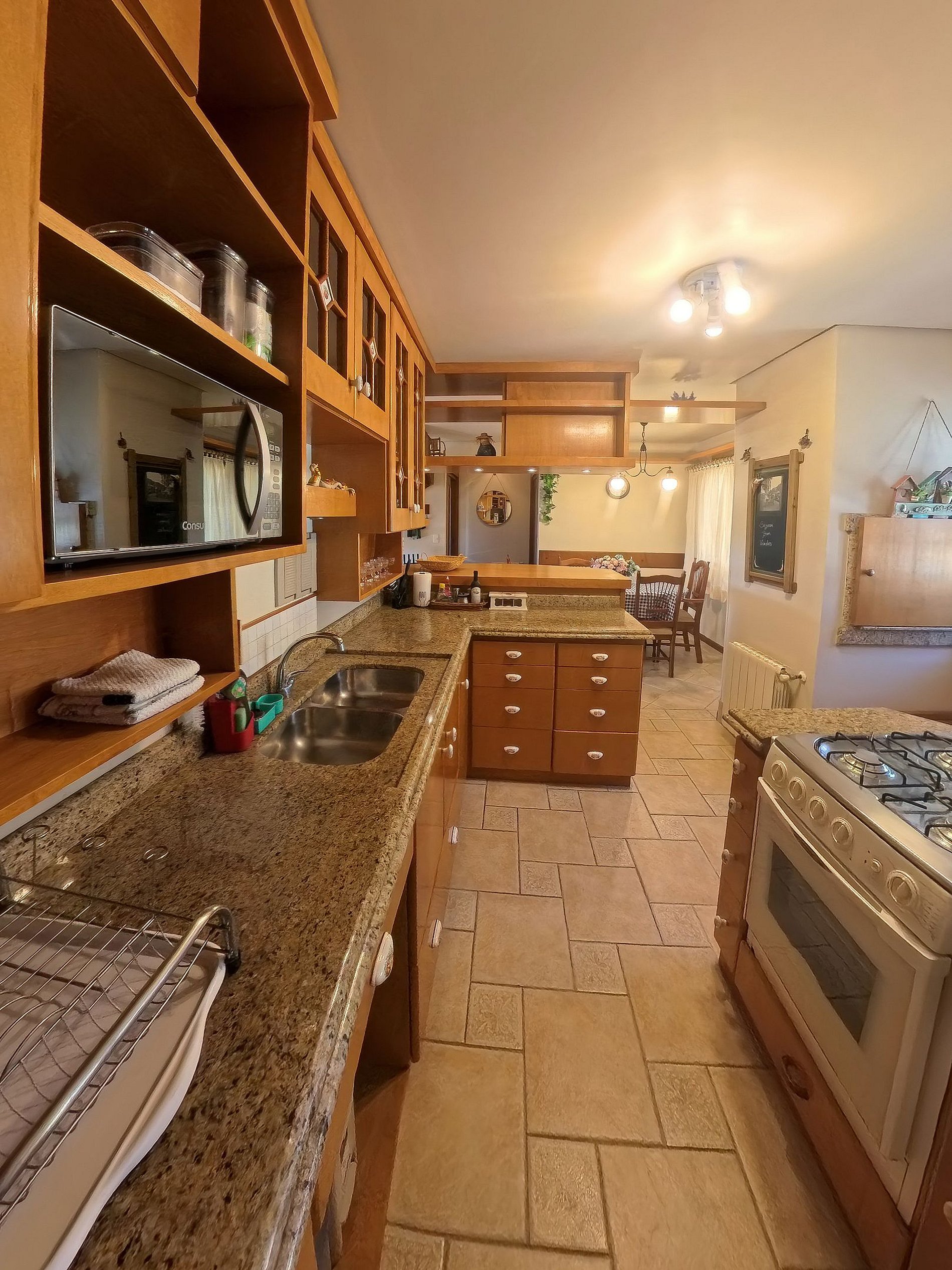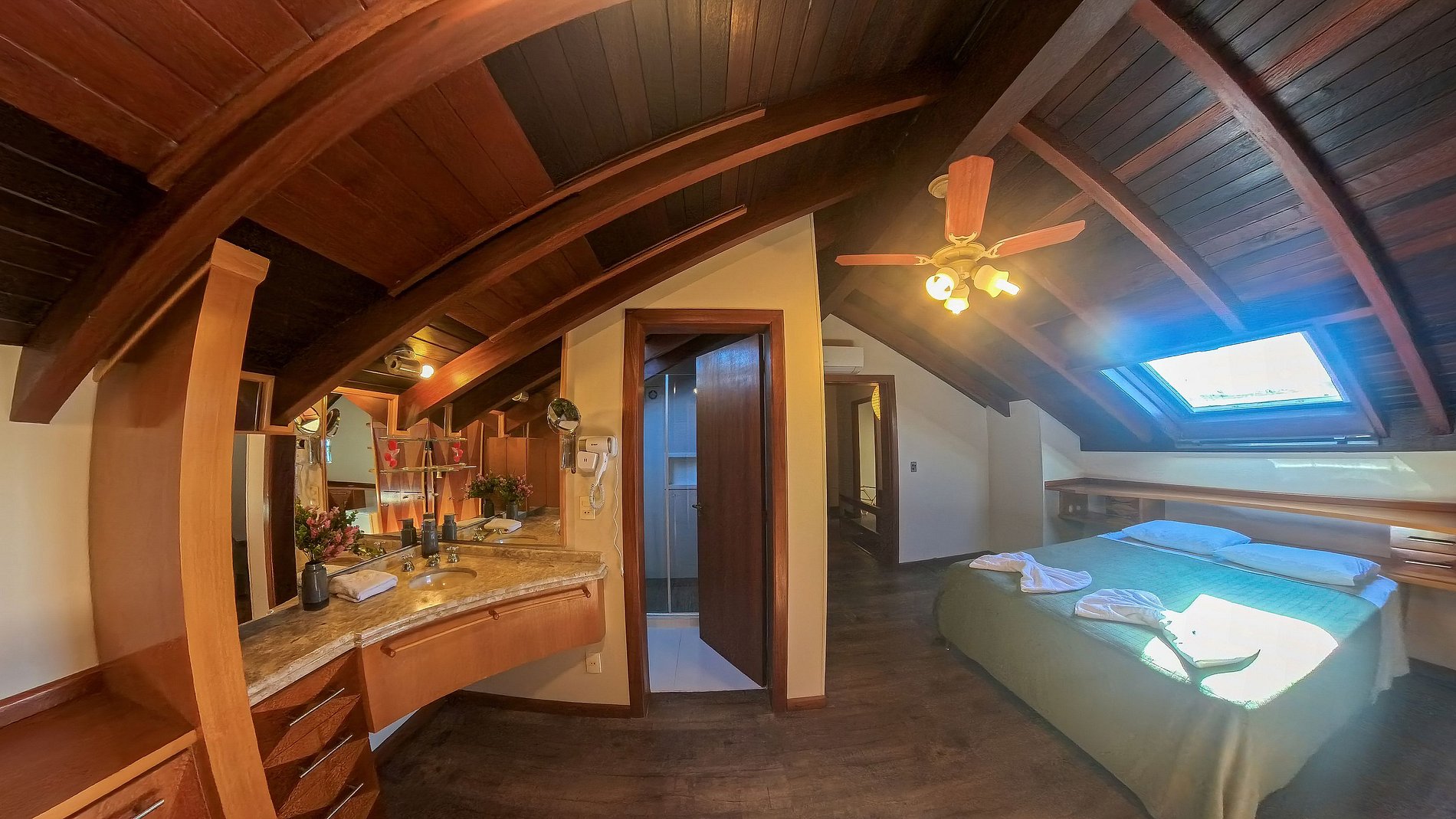 No primeiro piso temos a sala de TV, sala de jantar, cozinha completa, área de serviço, uma suíte e uma outra sala com um sofá-cama de casal e lavabo. No segundo piso, temos uma suíte familiar com uma cama queem e duas camas auxiliares de solteiro e no quarto ao lado, uma cama queem com auxiliar, completando assim 12 hóspedes no apartamento. Ar condicionado no andar superior.