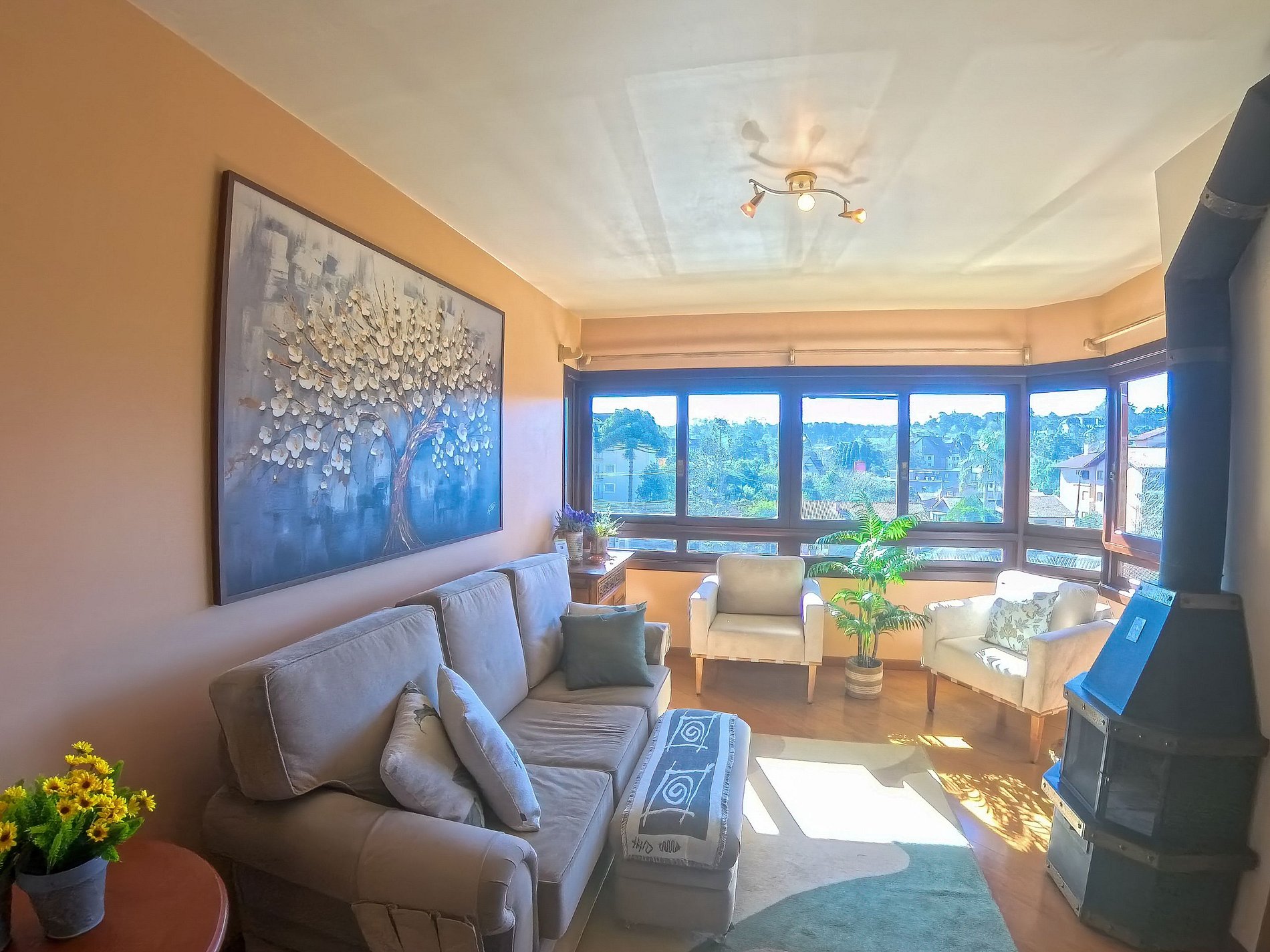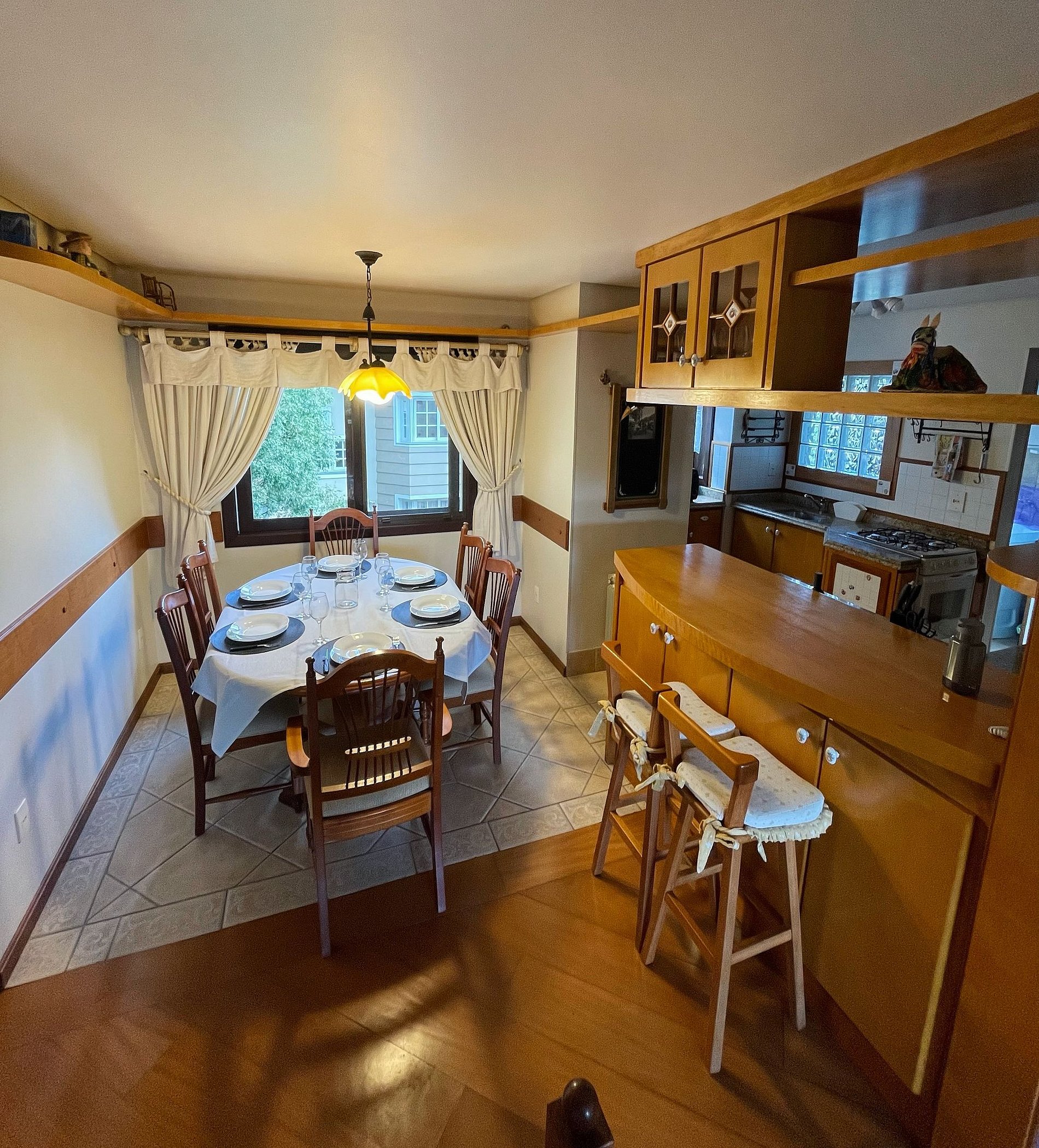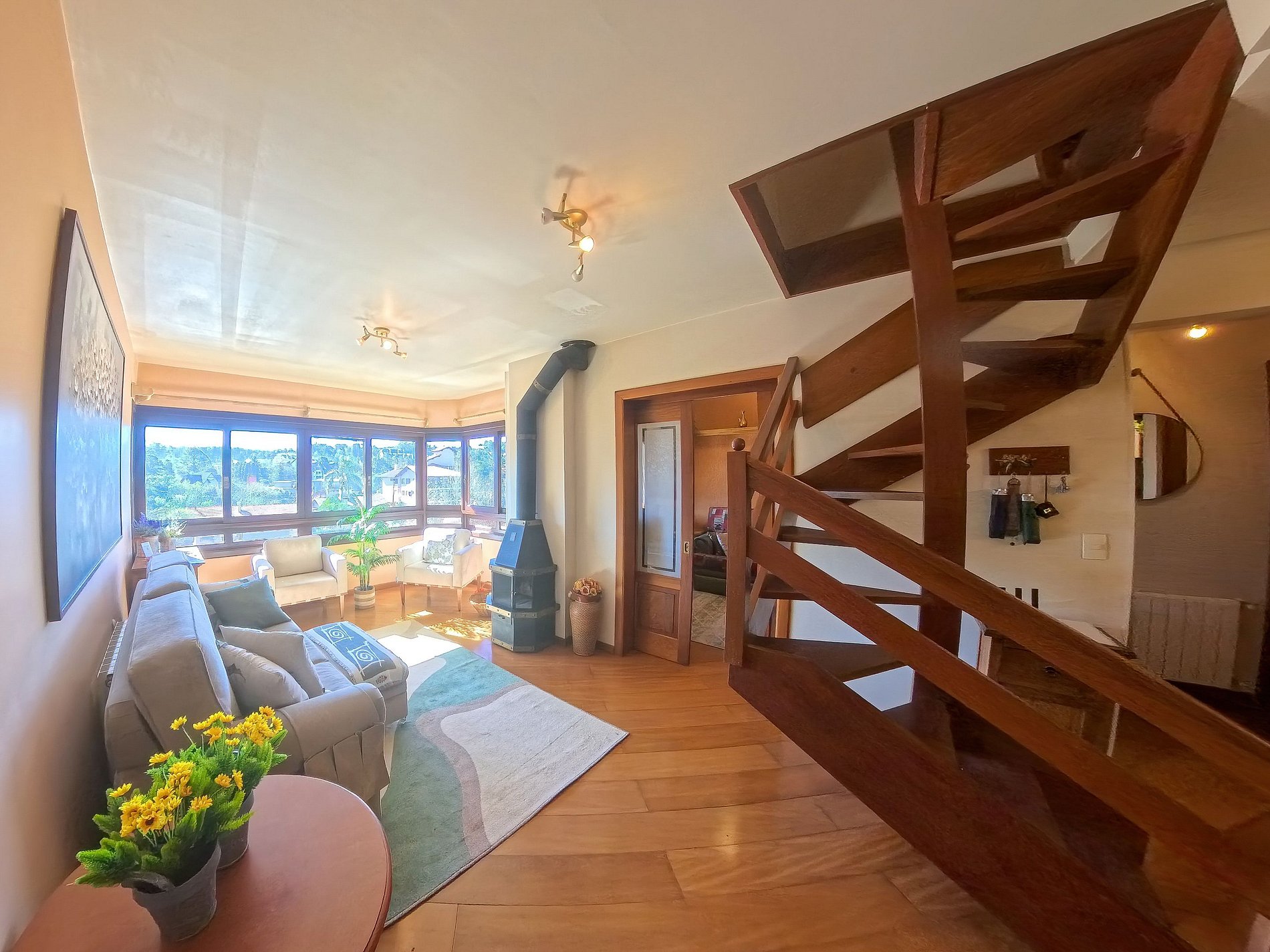 Apartamento duplex no centro de Gramado com muito espaço. Condomínio em frente à Praça das Rosas a atrás da pizzaria mais badalada da Serra Gaúcha, a "Cara de Mau". A Praça das Etnias, a Casa do Colono, a Rodoviária e a Rua Torta completam os pontos de referência da acomodação, que fica a poucos passos da Rua Coberta.
