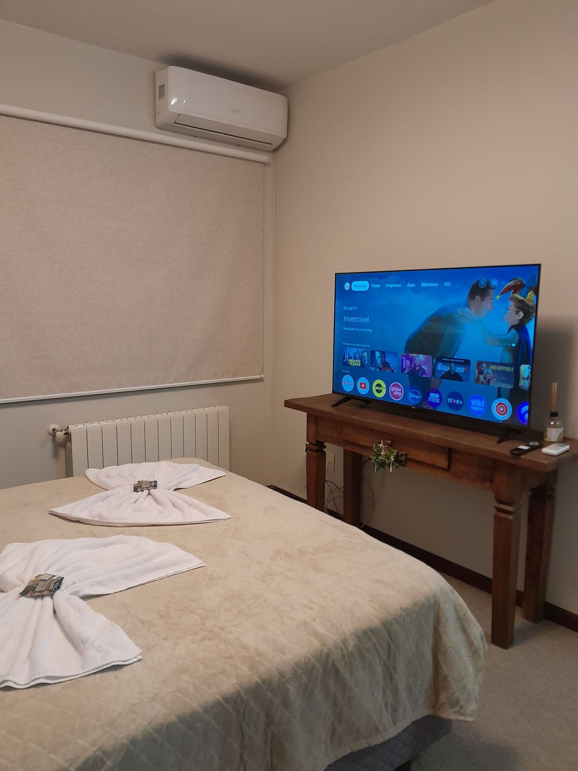 - Suíte cama queem, criados, abajur e ar condicionado quente/frio, TV Smart 50" armário para roupas e cadeira de balanço.