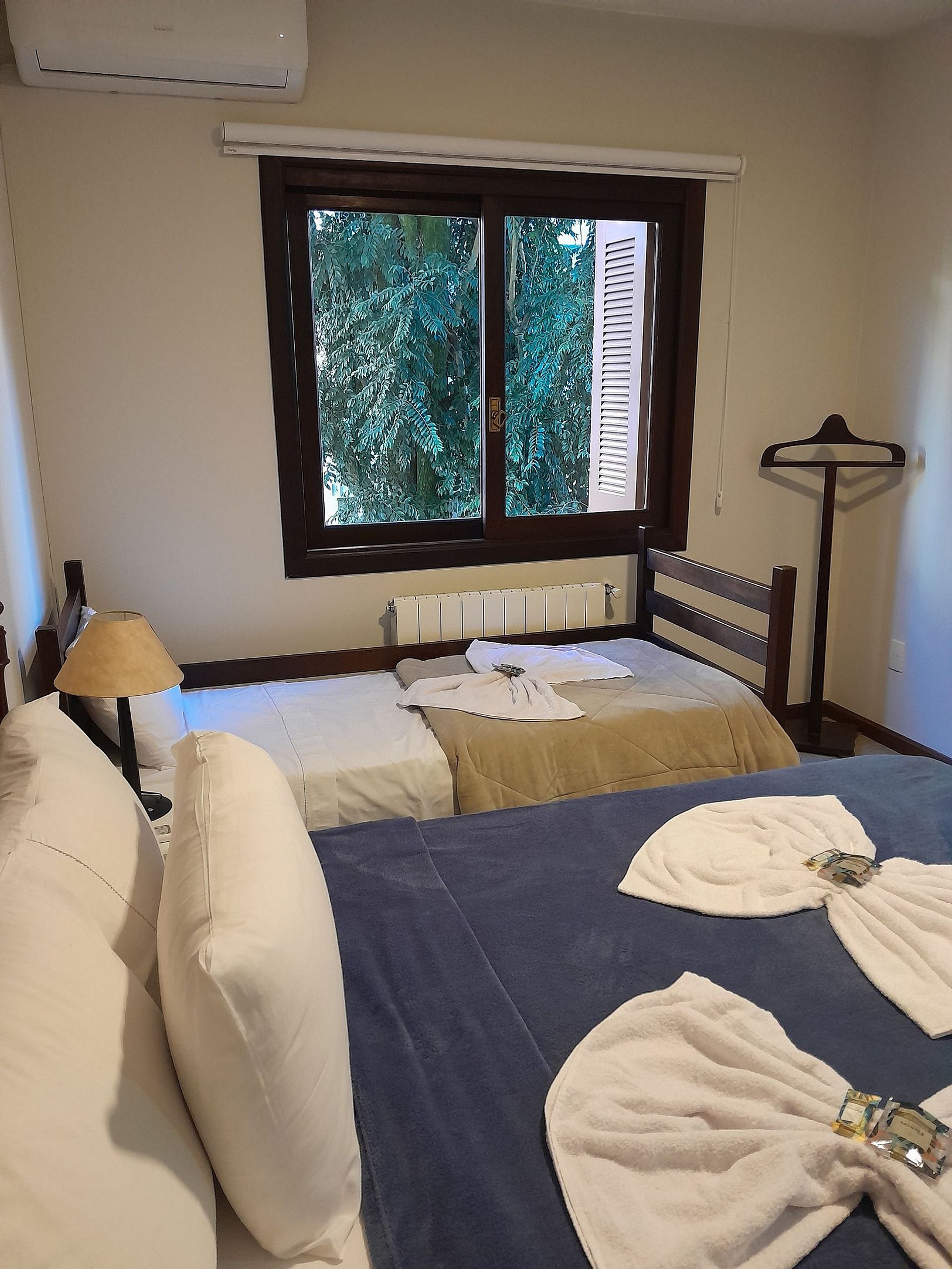 - Quarto quadruplo com cama de casal e beliche, armário, criado e abajur, ar condicionado quente/frio