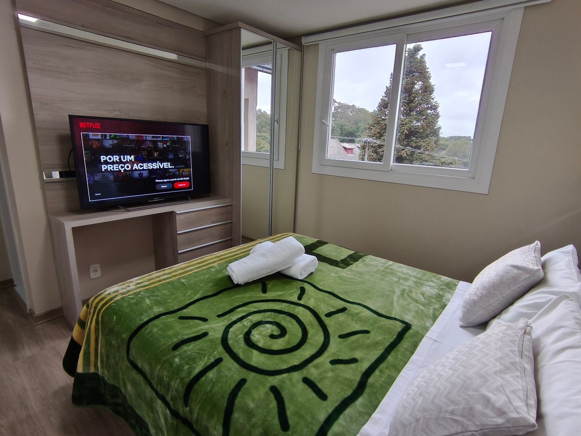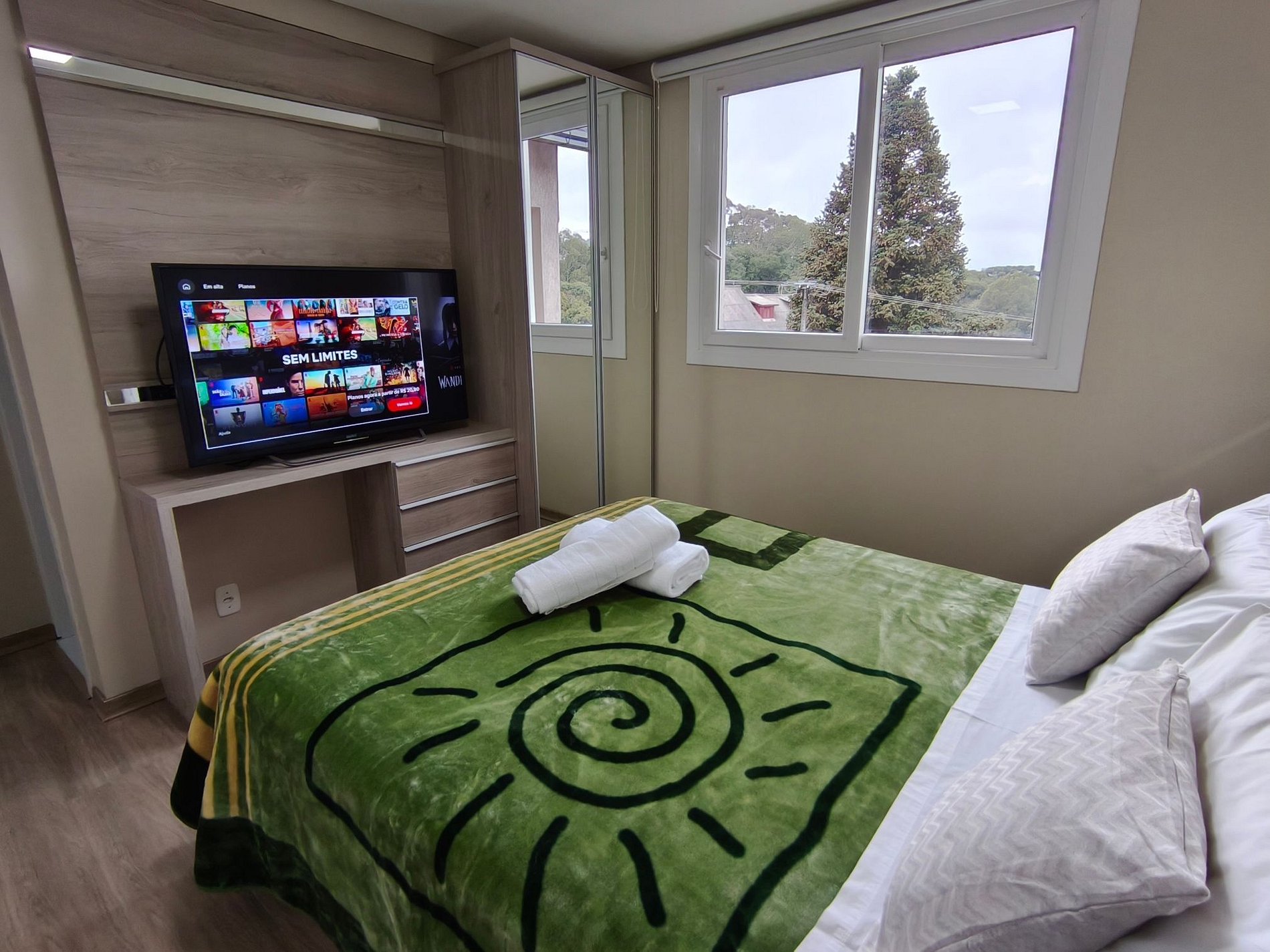Um apartamento com duas suítes em Gramado, oferecemos conforto e privacidade de dois quartos com banheiros privativos e TV, ideal para casais ou famílias pequenas. Sala espaçosa e requintada com um lavabo e estação de trabalho com cadeira confortável, uma varanda com sol da manhã e tarde, com vista para a rua. A cozinha é completa e na área de serviço temos uma máquina de lavar e tanque. A água da cozinha e chuveiros é aquecida a gás e não podemos esquecer da garagem ampla para 2 veículos.